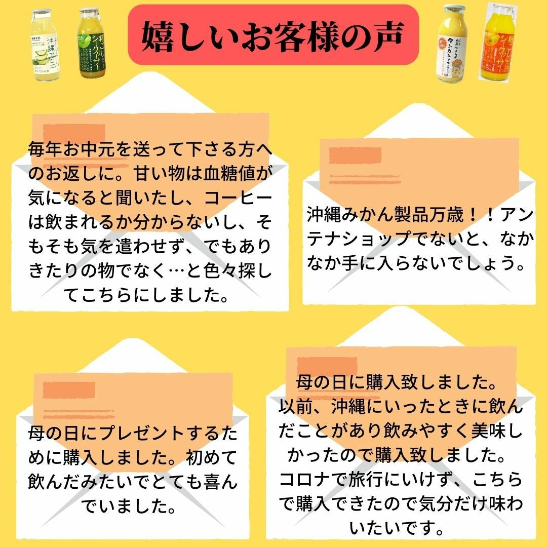 他の画像を見る 皆で分け合える◎大人気の沖縄県産ジュースセット 選べる ギフトセット シークヮーサー たんかん パイン カーブチー 沖縄アロエ 180ml 各3本 12本セット 送料無料 当店特別価格 ¥ 4,980 税込 選べる!沖縄県産ジュース4種類飲み比べセット。 詳細を見る お気に入りに登録する