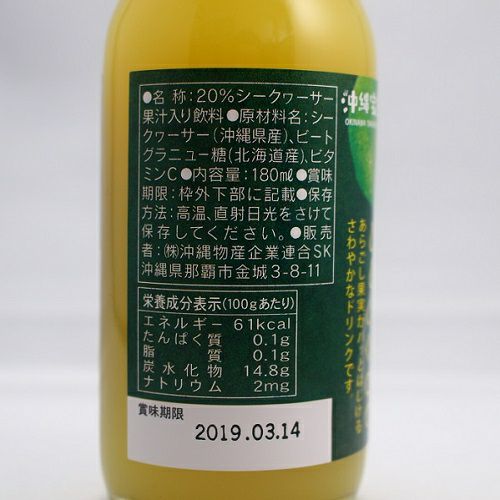 他の画像を見る みんなに配れる48本入り! 粗ごしシークヮーサー果汁20%180ml 48本セット 送料込み 当店特別価格 ¥ 12,040 税込 送料込みでお得な48本セット。 カートに入れる お気に入りに登録する