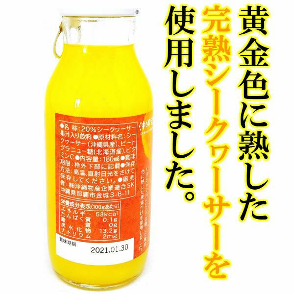 他の画像を見る 24本セット割引価格でお得! 完熟粗ごしシークヮーサー果汁20%180ml 24本セット 送料込 当店特別価格 ¥ 6,520 税込 送料込みでお得な24本セット。 カートに入れる お気に入りに登録する