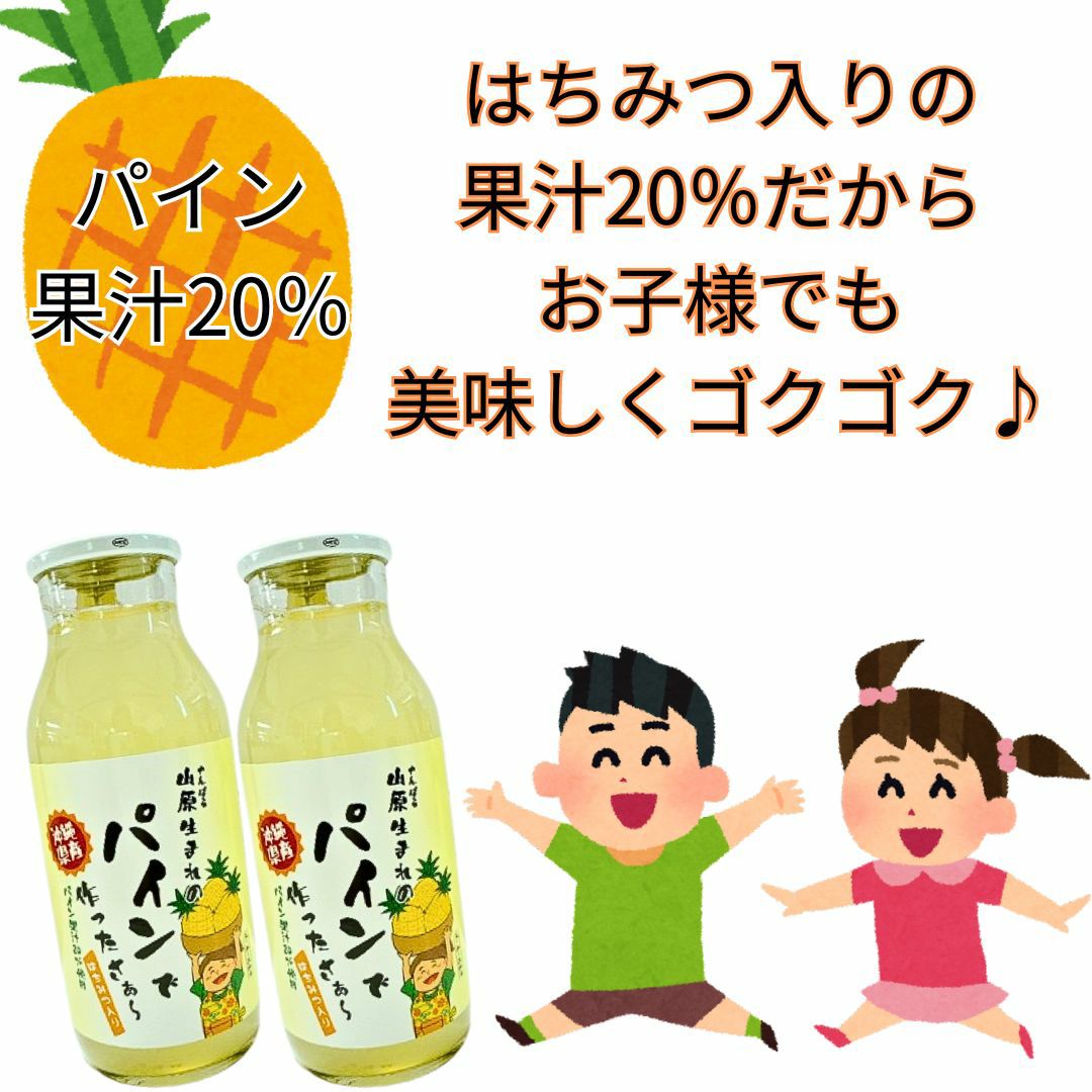 他の画像を見る そのまま飲める ごっくん飲み切りサイズ♪ 山原生まれのパインジュース180ml 果汁20% 24本セット ハチミツ入り 定価 ¥ 7,920 のところ 当店特別価格 ¥ 7,680 税込 カートに入れる お気に入りに登録する